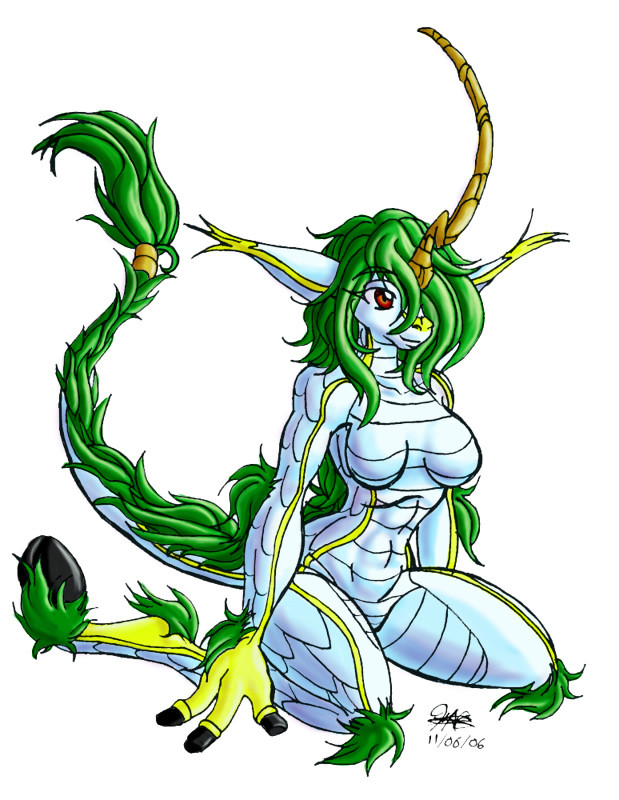 WOW! Absolutely awesome work, Bytail! The coloring and the pose and her expression are all really great. Such a neat fursona creature, you have