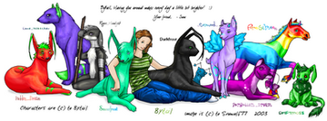 Green and purple.. never thought those two colors would go together well Anyway.. *squeals* *loves the pic* I especially love how you did Marsh's mane.. fuzzeh