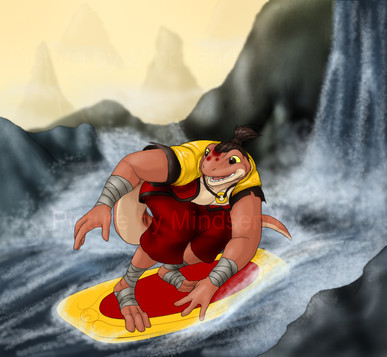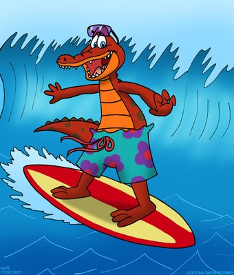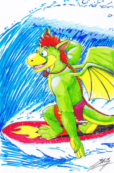 And rightly so, another piece for work. Woody (the raptor) the Surfer. This little guy went on wave clip for our 'child free with one paid adult admission' coupons hehe, its about a half inch tall on it XDD this is the full sized image I did for them. My skills with surfboards isn't the best but I had fun ^^Woody design (c) to me