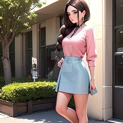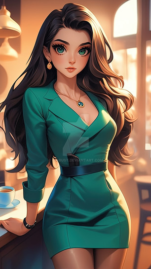 #ai #brownhair #bushes #cars #dress #gimp #orangeeyes #purse #spring #trees #walkway #outside #beautiful #beautifulgirl #beautifulwoman #greendress #waistbelt #aigeneratedart #aiassistedart