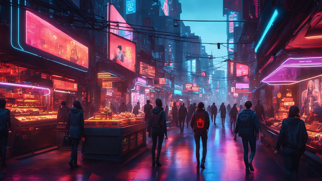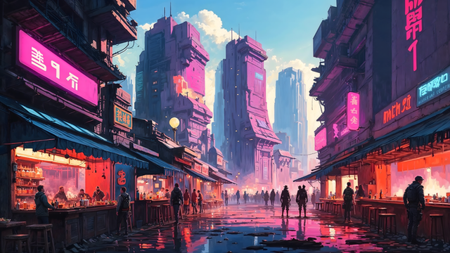 In a futuristic cyberpunk world its good to know that market street is always the sameI was working on a super detailed version of this but I pressed the export button before i was ready to copy out sections and it crashed my application because it was too big of an image XD. Lost many hours of work and I am sad but I will work on getting the full detailed one completed. For now enjoy