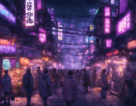 #ai #black #city #cityblock #cyberpunk #gimp #green #market #neon #purple #rain #street #wet #yellow #gimpphotoshop #aigeneratedart #aiassistedart