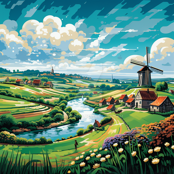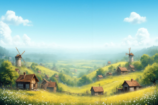 #ai #farm #fog #foggy #gimp #hills #morning #rolling #rollinghills #town #village #windmill #hillslandscape #gimpphotoshop #aigeneratedart #aiassistedart