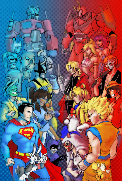 Bayonetta vs. Catwoman; Rorscach (I THINK he's DC; I'm not sure) vs. Fullmetal Alchemist...the list is endless.