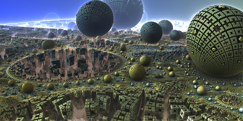 Rendered in Fragmentarium. Fractal by Kali , renderer by Knighty . Played with KaliBox ( p.x=sin(p.x); )#info Mandelbox Distance Estimator (Rrrola's version).