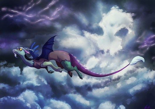 All glowing and heavenly. Heh, I especially like the shimmery scale-effect on his tail.