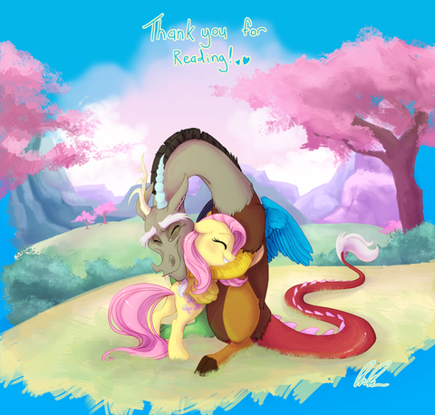 XD Man the FEELS! Β You're just too good, love how Discord looks and Fluttershy on his tail is adorable