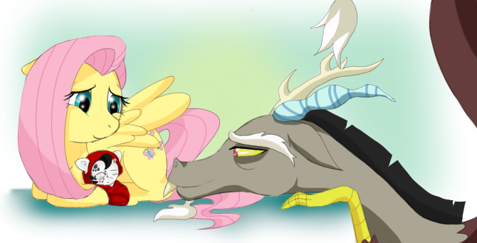 This is adorable My headcanon is that Fluttershy and Discord have a great friendship (and romance lol) throughout Fluttershy's life and then eventually it's just Discord and Twilight left sad and alone and immortal