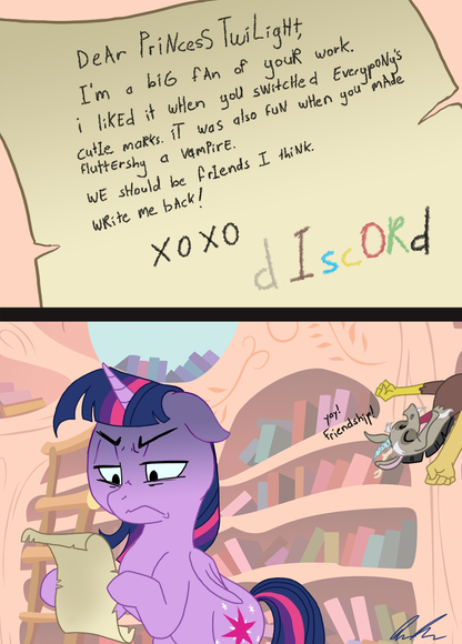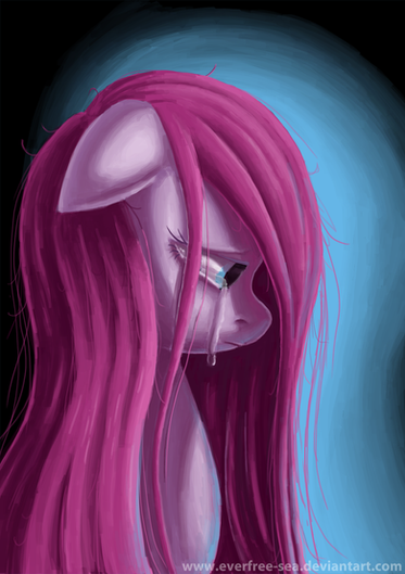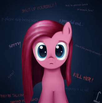 I sometimes wonder how Pinkie feels, when all fans everywhere portray her straight hair mood as her being a homicidally insane person and never anything else. I wonder how she feels knowing that the way she expresses unhappiness and being upset, lonely and miserable is ALWAYS interpreted as being "bad" or "evil" and more often than not has her killing things.I wonder if it makes her feel she's not allowed to ever show a negative emotion... because people always interpret it as her being a monster.