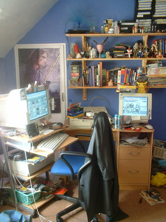 This is pic of my computer (where I spend most my free time and create my creations). Yeah I know it looks like a mess but everything I need is in an easily accesible spot, the floor!!! That's my new 17" True Flat Display moniter I got for my birthday, it's really clear.Related content