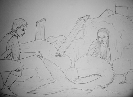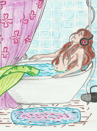 She's trapped in the bathtub... The mermaid has sort of become an OC of mine, along with a boy, who is getting her salt for her bath.Sad mermaid is sad.