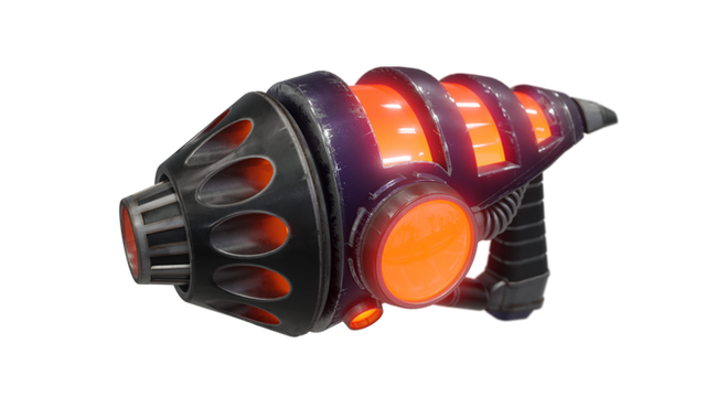 "While it originated as a failed attempt at a disintergration ray, the Morph-o-ray has now become one of Gadgetron's most popular devices. Just shine the Morph-o-ray beam at your foes and watch them turn into harmless chickens! Hold the beam on an enemy for a short period of time to convert it. Caution: larger enemies may take longer to convert."