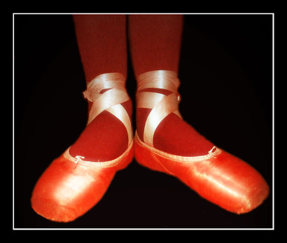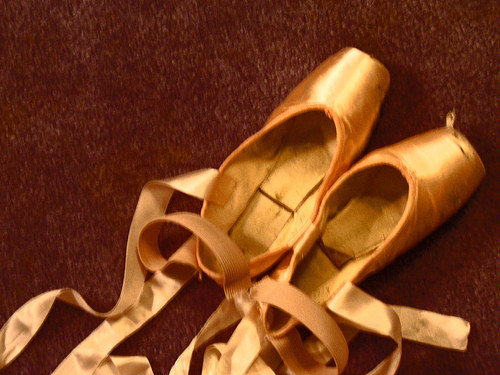 got me on a ballet craze by showing me a beautiful picture of a woman en pointe in arabesque (drawn by some guy...can't remember *feels bad*)so i went on dA and searched "pointe ballet" and saw all the pictures of pointe shoes, and decided to take a picture of mine and put them on here ^^ my artistic contribution as a dancer.