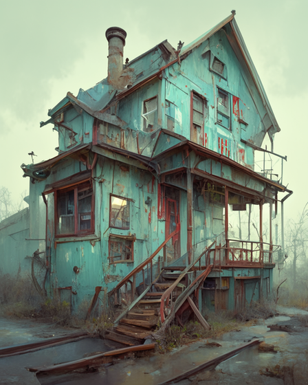 #abandoned #ai #dwelling #fall #house #neglected #postapocalypse #ruined #slum #village #aiart #stablediffusion