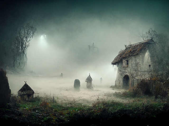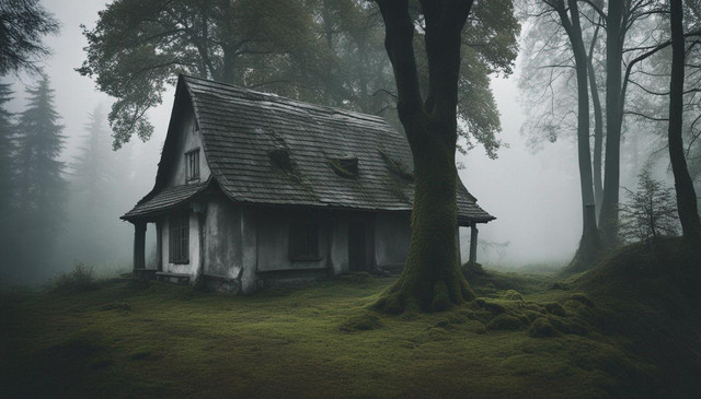 #ai #ambient #creep #dark #digitalart #fog #house #moss #nature #trees #aiart #stablediffusion