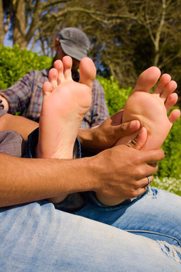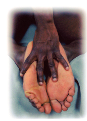 An excellent example of the difference in skin color between the soles of his feet and the rest of his body.