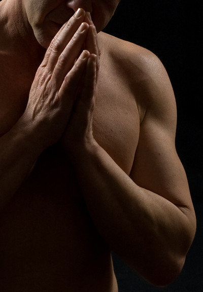 The asymmetry of the hands, and the power of the clinched fists, the chest subtly behind. Beautiful.