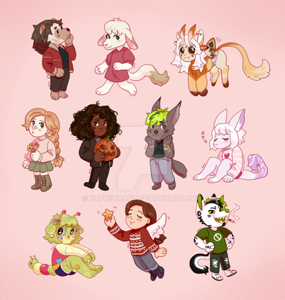 been working on quite a few commissions as of late, and I wasn't sure how to upload the chibis I've done without spamming the hell out of my gallery,,so here's a whole page of them! ^^