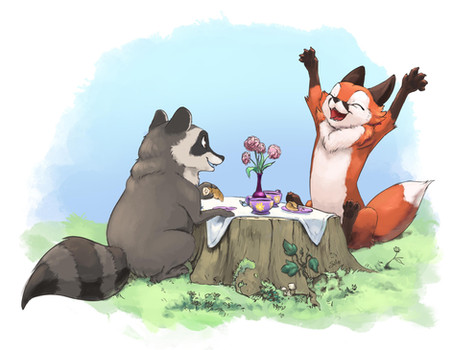 #anthro #spring #anthropomorphic #fennecfox #forest #raccoon #pennyverse