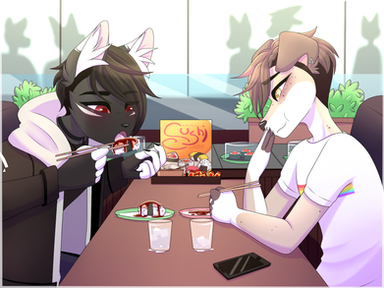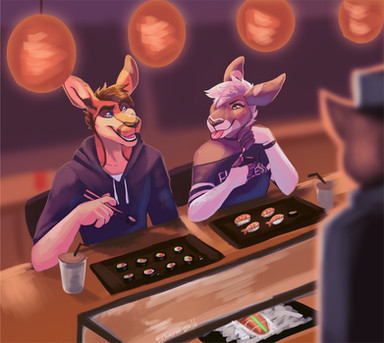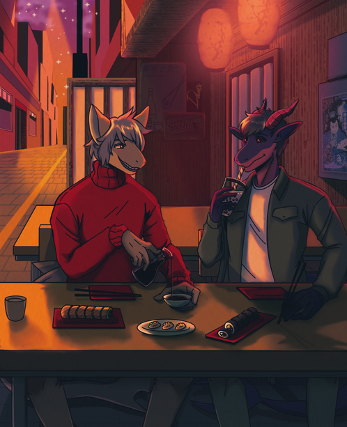 #anime #anthro #couple #coyote #cute #furry #lava #nostalgia #retro #scene #sushi #wolf