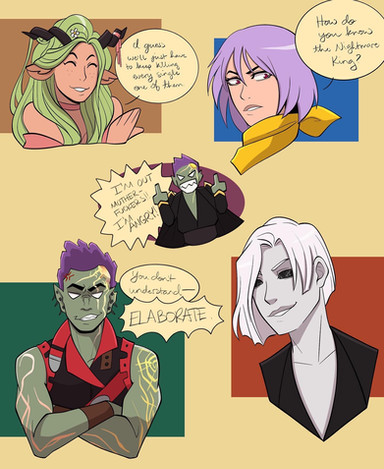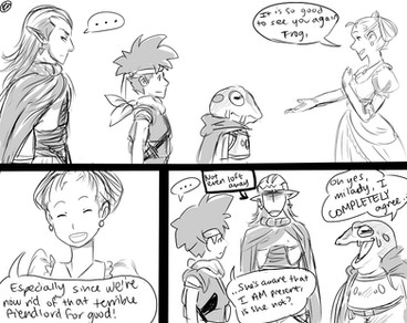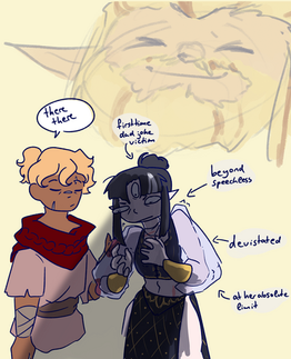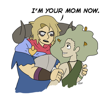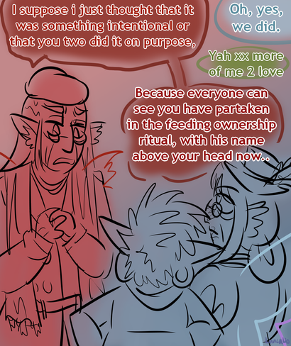 [Image description: A colored digital drawing of Majora’s Mask characters interacting, the background is just gray. Kafei and Anju are holding hands (Kafei is his adult self, and is not cursed). Madame Aroma is pulling Kafei away from Anju and hugging him. He looks irritated. Mayor Dotour has come over next to Anju to talk to her, and she’s looking at him awkwardly.