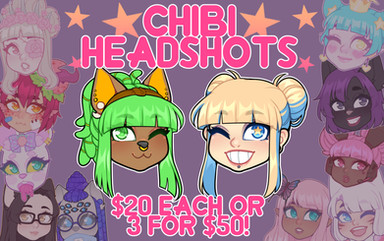 CHIBI HEADS!Super cute chibi heads for your profile, rp inventory, even as your dA icon!! Just note me the reference and send me the points and they'll be done in 1 or 2 days after payment! Canvas size is 120x120p