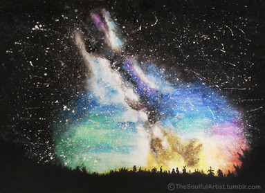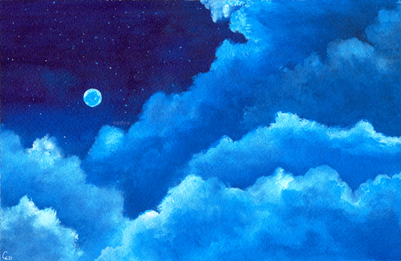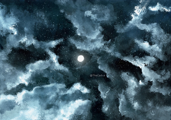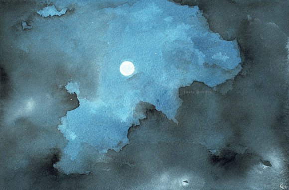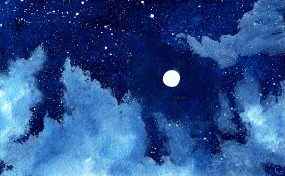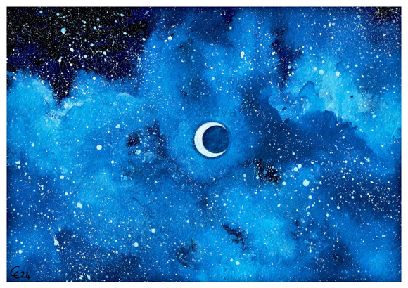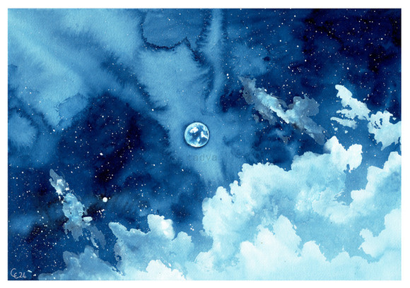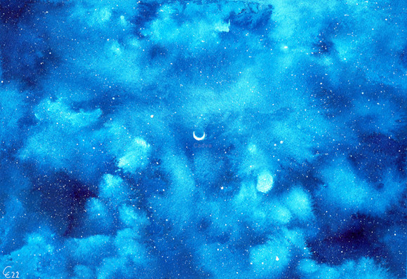#awakening #blue #landscape #lines #moon #night #painting #power #sky #space #stars #trees #watercolor #watercolour #cadva #art