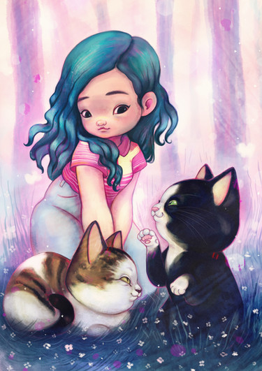 #cat #cats #cute #digitalart #girl #hearts #oc #painting