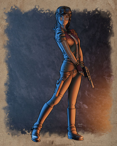Thanks, Bryan. There are hints as to where her attitude may come from. Her unifirm is soiled and a bit ragged...suggesting hard-fought experience. A calm, resolute expression belies a simmering defiance. It's a strong female character.