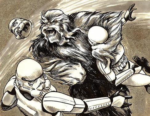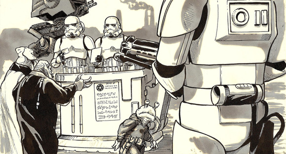My question shall always be - how come the old Stormtroopers can only blast protocol droids and jawas - they must have some reservations about hitting humans. Great piece - is the shading called letra-tone or something like that, Michael? I remember buying some back in the early 90s to experiment on some comic art at the time. They basically were transfers that you applied to the image.