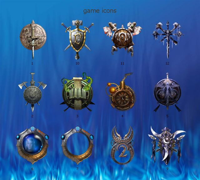 Shield Icon Set for "Lords of War". I did the design, someone else did the paints.Related content