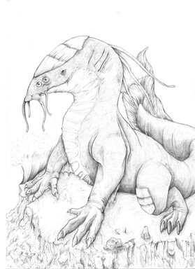 Ultimate Weapon from Final Fantasy VII.Ok so basically I was up at some stupid hour of the morning chasing this feller around and thought hell I wanna try doodling it before I kills it...I'm thinking maybe I shall draw each weapon as I killz it.