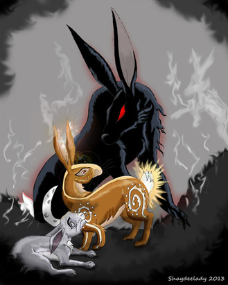Yay! A good drawing of the black rabbit! And yay you don't add wings. (why people do that I don't know)Really creepy but also serene. Excellent job!