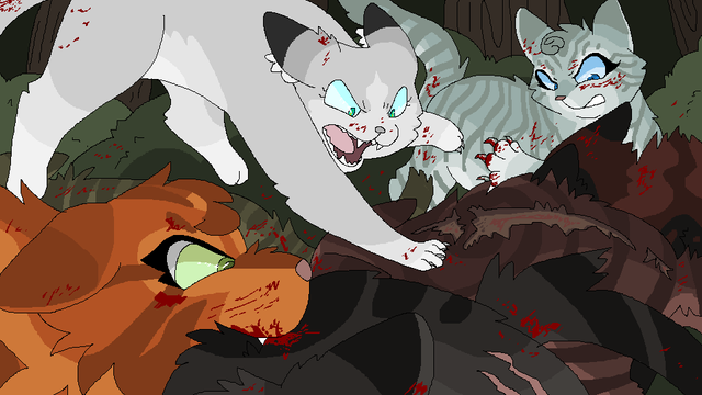Bluestar being cornered by Stonefur and Mistyfoot, and Graystripe tattling on them to Fireheart.