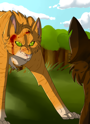 Yeah, and that's not the reason I don't like Firestar. I got mad at him for being so utterly egotistical at the end, accepting he was the fourth cat without a question, and insisting that he would be the one to take Tigerstar down, even though there were plenty of other cats who Tigerstar had wronged even more so than Firestar. I was disappointed in his death, but the Erin's had said he was going to die long before the book came out, so it wasn't unexpected for me.