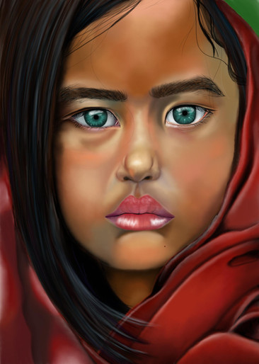 Inspired from a picture in a newspaper and from National Geographic's iconic"Afghan Girl".I hope the colors dont look too dark and weird! (I have monitor issues so I cant really see the colors well..)