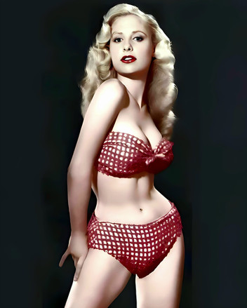 #50s #bikini #blonde #breasts #cleavage #colorization #hips #photoshop #pink #red #waist #modelphotography #pinup #retro #vintage #bettybrosmer
