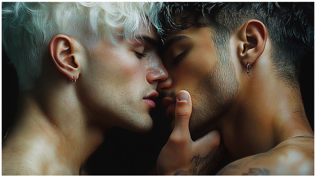 #gay #kiss #love #sweat #wet #adoration #devotion #erotica #eroticart #facialexpressions #gaycouple #gaymen #highresolution #hyperrealism #kissing #kissingcouple #loveromance #photorealistic #queer #queerart #romance #sensual #sensuality #skintexture #touching #transcendence #gayhomosexual #lgbtcharacters #hyperrealisticart #8kresolution