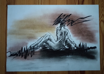 Charcoal drawing attempt on a piece of Amazon packagingRelated content