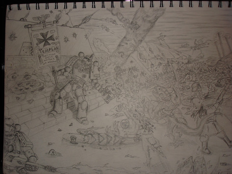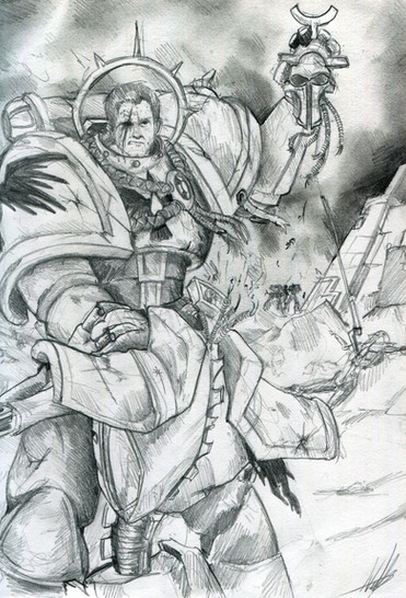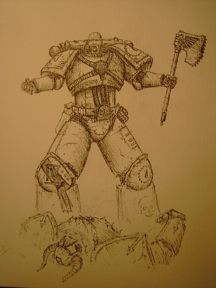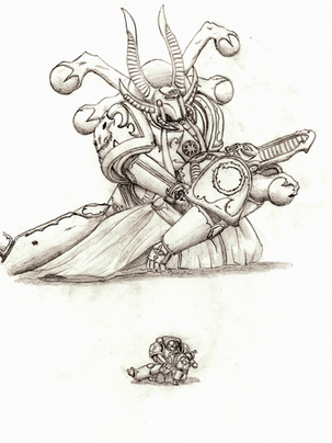 An Emperor's Champion facing a Daemon Prince. Woo! No background for you, focus on the Daemon and the SpaceMarine.