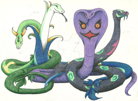 I love the markings and the positioning of the arching (Rearing?) snake!