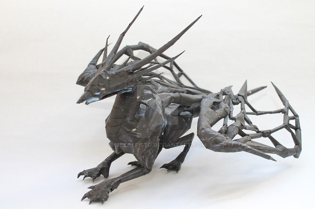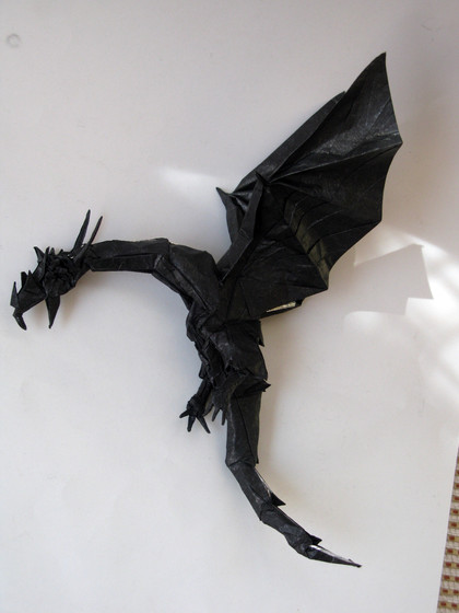 Folded from a 18" square of black UnryuToothless, the nightfury dragon from the How to Train Your Dragon movies.