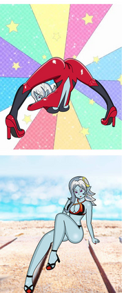 ''Eh?'' Cara raised an eyebrow at how revealing it was, and even caught Dabura looking at it, though it was hard to gauge his reaction to such things. ''Whatever, I'll get to work then. ... You like it king?'' Cara winked at Dabura before teleporting away.