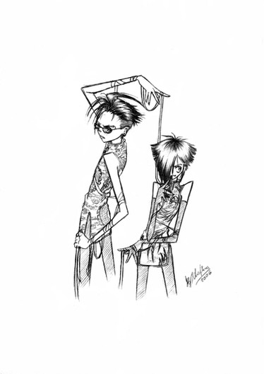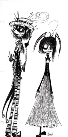 just one more reason not to stay up til 5 in the morning reading all your JtHM and Gloom Cookie comics.this is way screwed up because i didn't do any sketch beforehand, i just started doodling with my ballpoint pen.