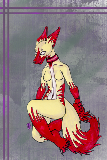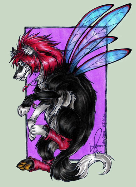 i don't even know where to begin on this description. first i'd just like to point out that this is nothing more than a glorified sketch if you're just looking for artistic execution of an idea. i did this for myself and i did it the way i wanted to and it was only after i had finished that i considered sharing this. because honestly, unless you're in my head this looks like more bland furry angst or the like, and is not worth the effort to fullsize. unless, like i mentioned, you're in my head. so when i'm done humoring my subconcious, this will get tossed into my scraps section.the funny thing about this is that it never stayed in one shape the whole way through. i started drawing to figure out some feelings, then somehow or other the theme changed entirely. originally this was a hybrid of Caishide and Kimberly, with Kimberly ripping out the distorted Caishide wings. now it's just a nightmare Caishide trying to rip away the distortion and spreading it in the process.