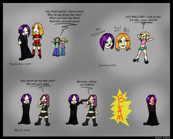 With a tendency towards "LOL, emo." or "OMG, emo." Sorry that I am so terribly impulsive that I had to share my thought. It IS my perception of your piece, after all. In return you looked at my stuff and gave me a hint of what you think. So we are even. No hard feelings, at least on my side. More power to you. Perception is what counts on the Internet after all, not insight.