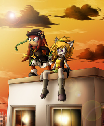 But no, really.. I Love this sky because it has so many different colours, not just random colours thrown together. These fit real nicely, like a pink sunrise. Also, you've done pretty well with reflecting those colours back onto the characters.
