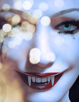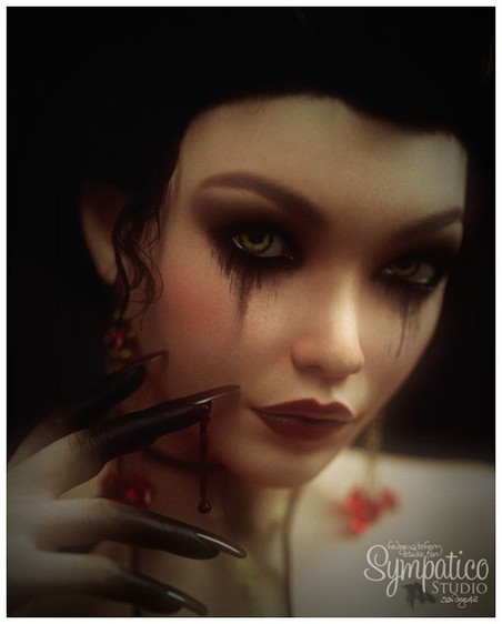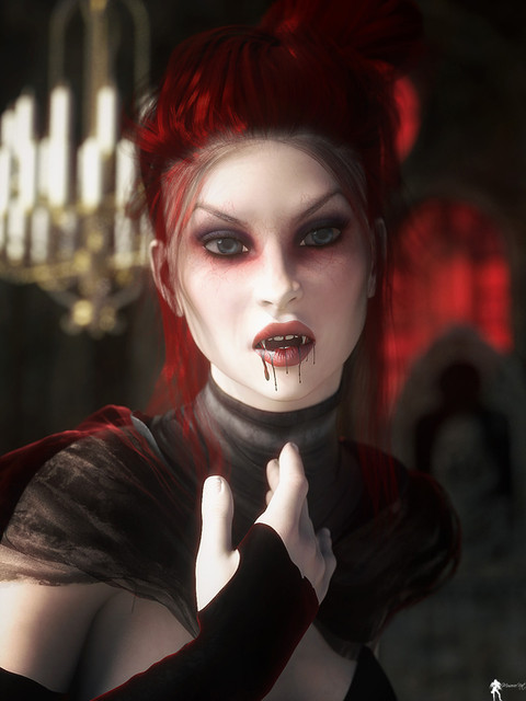 Wonderful contrast of the red and the black. Love the soft focus and the way the eyes can stick to the small details: fangs, nails, lips, jewellery...