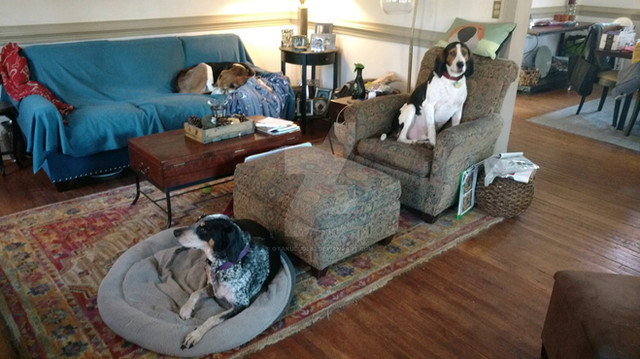 The other four dogs in my family out of the six. Wasn't taken by me, but by my mother.From left to right, top to bottom: