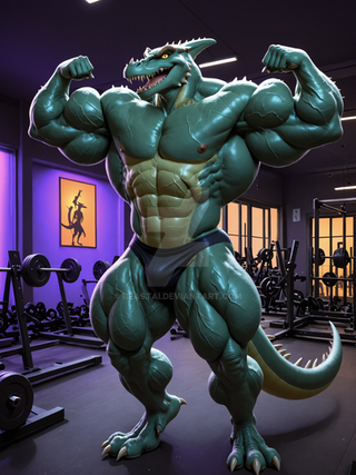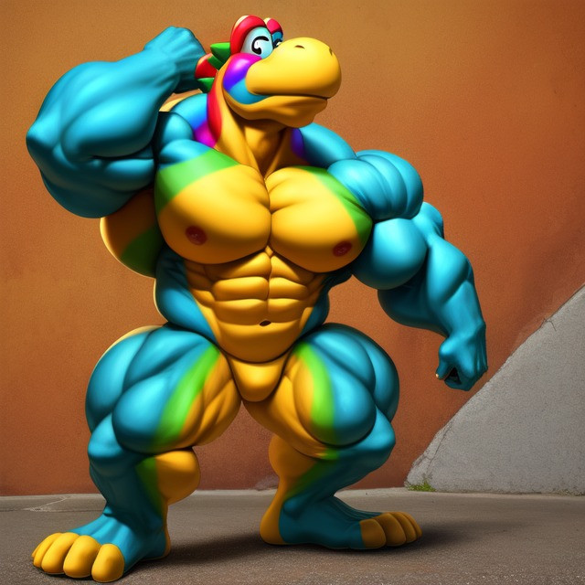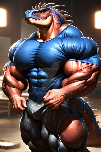 #ai #anthro #bodybuilder #dinosaur #furry #male #muscle #muscles #muscleart